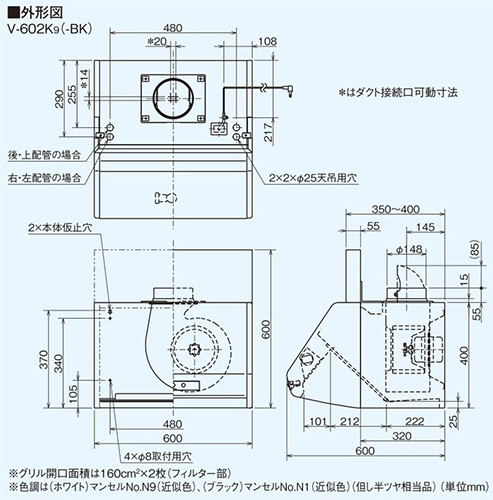 レンジフード[シロッコファン][幅60cm][総高さ60cm][ブーツ型][前幕板付属][2型相当][ブラック]