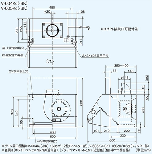 ・付属品:上幕板総高さ600mm対応(幕板部高さ200mm)