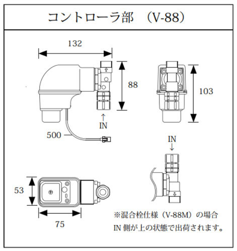 ※流量調整及びメンテナンス用のため、コントローラの直前に必ず、止水栓又は、ボールバルブを設置してください。
