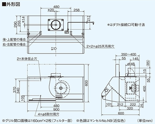 ・風量(50Hz):強600/中350 24時間換気148