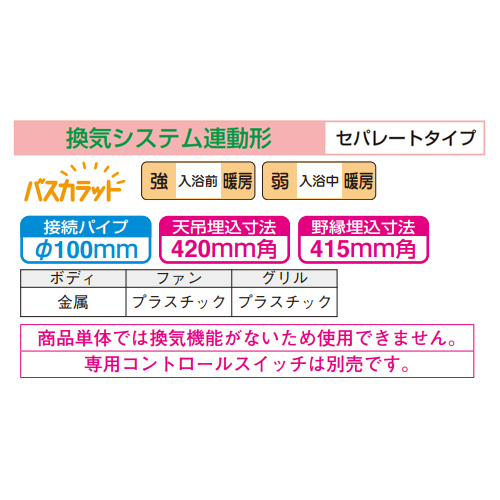 浴室換気暖房乾燥機 バスカラット[電気式][天井埋込型][100V][換気システム連動形][セパレートタイプ]