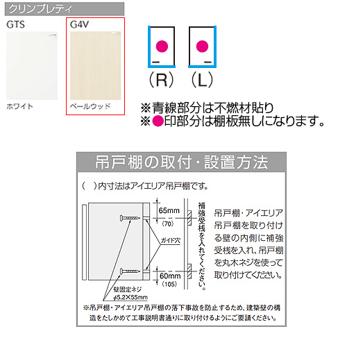 ショート吊戸棚[不燃仕様][クリンプレティ][木製キャビネット][間口30cm][奥行37.5cm][ペールウッド]