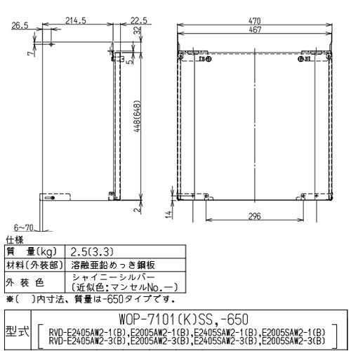 WOP-7101(K)SS|リンナイ|配管カバー[高さ450mm][RVD-Eシリーズ][RVD-UEシリーズ][シャイニーシルバー][給湯器部材]|リフォームネクスト