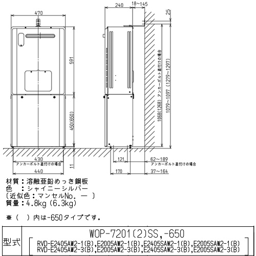 WOP-7201(2)SS-650|リンナイ|据置台[高さ650mm][RVD-Eシリーズ][RVD-UEシリーズ][シャイニーシルバー][給湯器部材]|リフォームネクスト