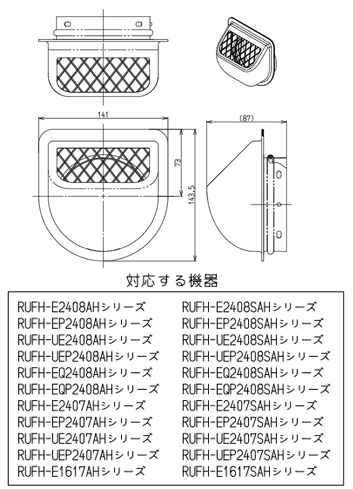 排気カバー[上方][143.5×141×87][RUFH-Eシリーズ][RUFH-UEシリーズ][PS設置型][給湯器部材]