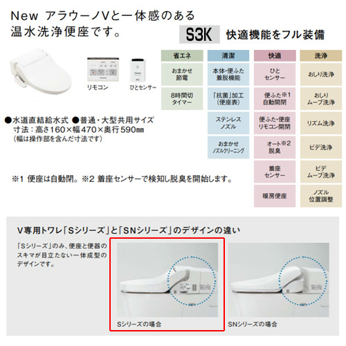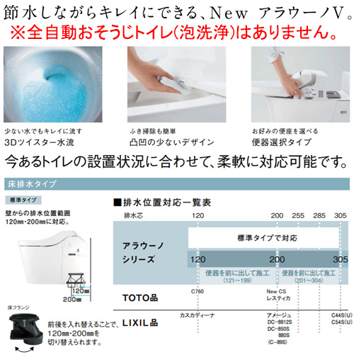 タンクレストイレ NewアラウーノV[専用トワレS3K][床:排水芯120/200mm][手洗い有り][タンクレス便器][一般地]