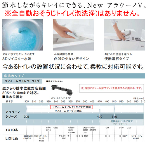 タンクレストイレ NewアラウーノV[専用トワレS5][床:排水芯305〜510mm][リフォームダイレクト][手洗い有り][タンクレス便器][一般地]