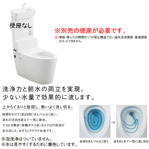 設置可能なお好みの便座(別売)を自由に組み合わせて使える便座なしタイプです。