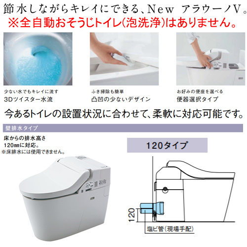 組み合わせトイレ NewアラウーノV[壁:排水芯120mm][手洗い有り][タンクレス便器][一般地]