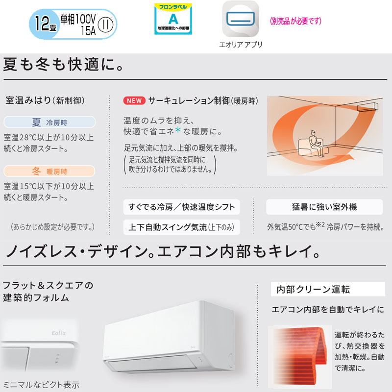 ルームエアコン[Fシリーズ][100V][12畳][3.6kW][エオリア][クリスタルホワイト][2026年モデル]
