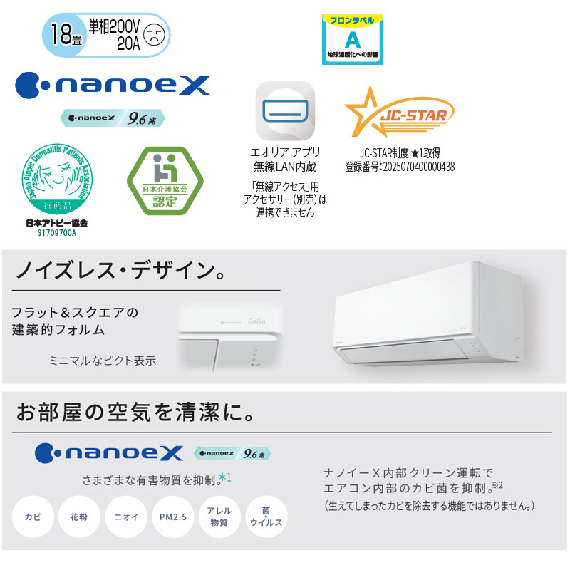 ルームエアコン[Jシリーズ][200V][18畳][5.6kW][エオリア][クリスタルホワイト][2026年モデル]