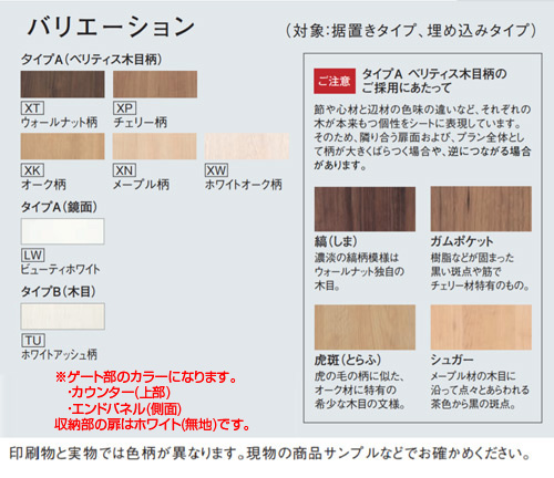 ※タイプA(ベリティス木目柄)はシステムキッチンやドアとのカラーコーディネートも可能です。