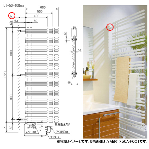 ●タオルウォーマー[リミテッドスペースヒーター][YAE-Rシリーズ][奥行89mm][壁直角取り付け仕様][幅500mm][高さ1720mm]
