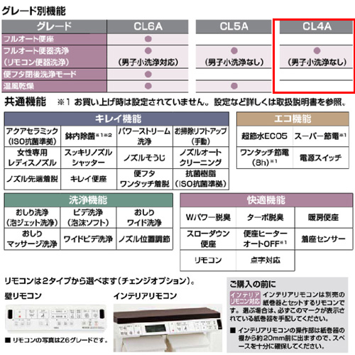 [グレード別(CL4A)機能]