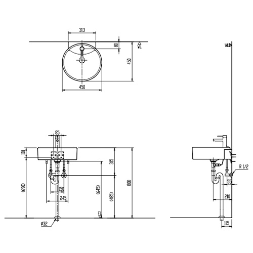 洗面器セット サティス洗面器[壁掛式][丸形][シングルレバー混合水栓][エコハンドル][床排水][壁給水][一般地]