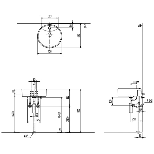 洗面器セット サティス洗面器[壁掛式][丸形][シングルレバー混合水栓][エコハンドル][床排水][壁給水][ボトルトラップ][一般地]