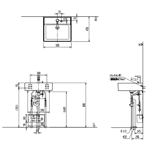 ※洗面器の背面、裏面には釉薬がかかっていません。