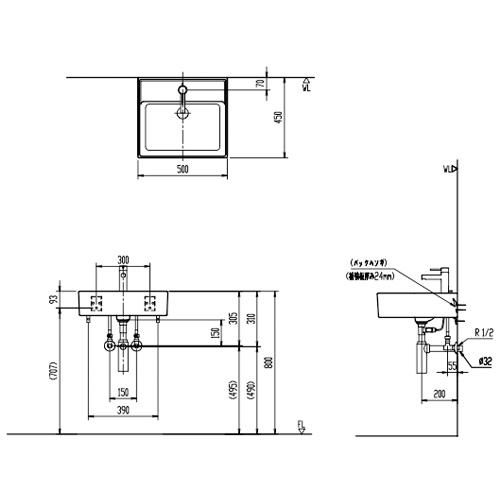 洗面器セット サティス洗面器[壁掛式][角形][シングル混合水栓][エコハンドル][壁排水][壁給水][ボトルトラップ][一般地・寒冷地共用]