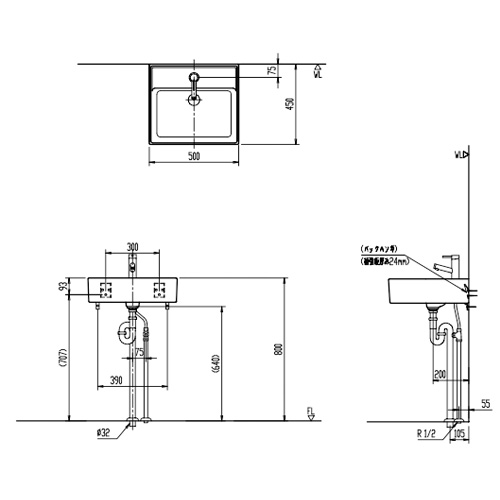 洗面器セット サティス洗面器[壁掛式][角形][単水栓][床排水][床給水][一般地]