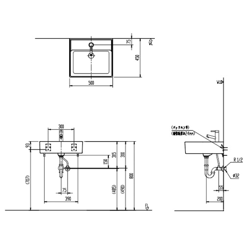 洗面器セット サティス洗面器[壁掛式][角形][単水栓][壁排水][壁給水][一般地]