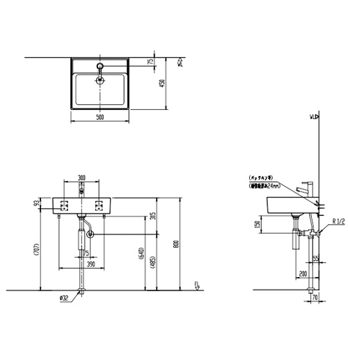 洗面器セット サティス洗面器[壁掛式][角形][単水栓][床排水][壁給水][ボトルトラップ][一般地]
