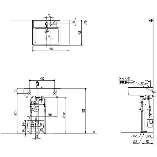洗面器セット サティス洗面器[壁掛式][角形][シングル混合水栓][エコハンドル][吐水口引出式][床排水][床給水][一般地]