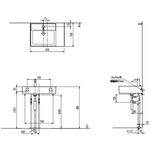 ※洗面器の背面、裏面には釉薬がかかっていません。