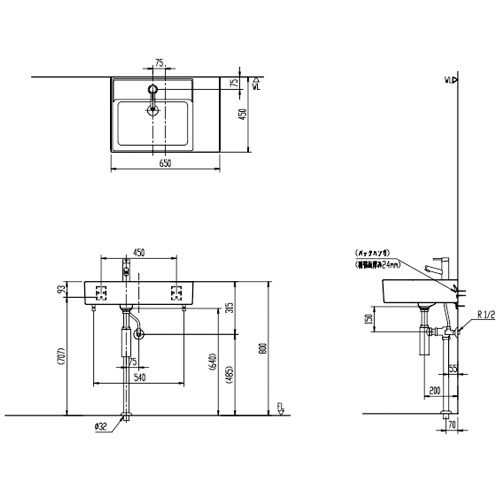 ・サイズ:幅650×奥行450mm