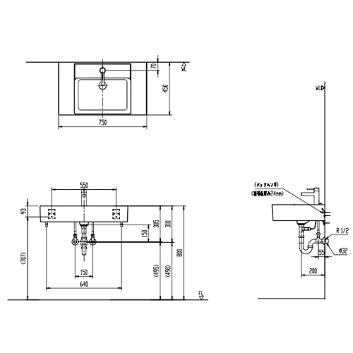 ・サイズ:幅750×奥行450mm