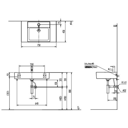 ・サイズ:幅750×奥行450mm