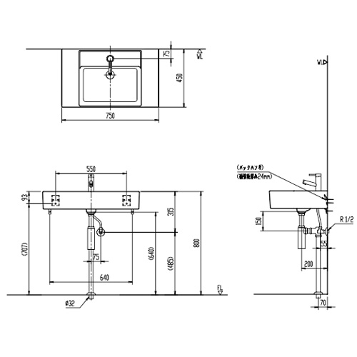 ・サイズ:幅750×奥行450mm