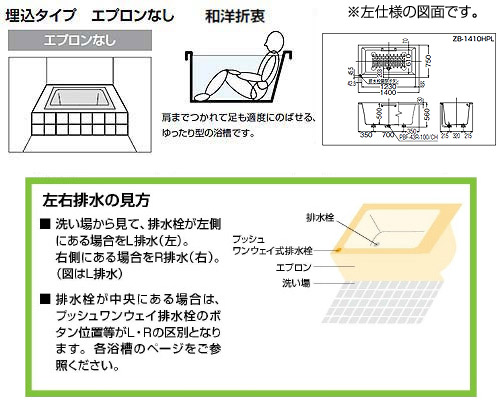 ●浴槽 アーバンシリーズ[埋込浴槽][和洋折衷タイプ][1400サイズ][エプロンなし][プッシュワンウェイ][ハンドグリップ]