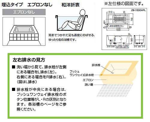 ●浴槽 アーバンシリーズ[埋込浴槽][和洋折衷タイプ][1500サイズ][エプロンなし][プッシュワンウェイ][ハンドグリップ][ベンチ付]