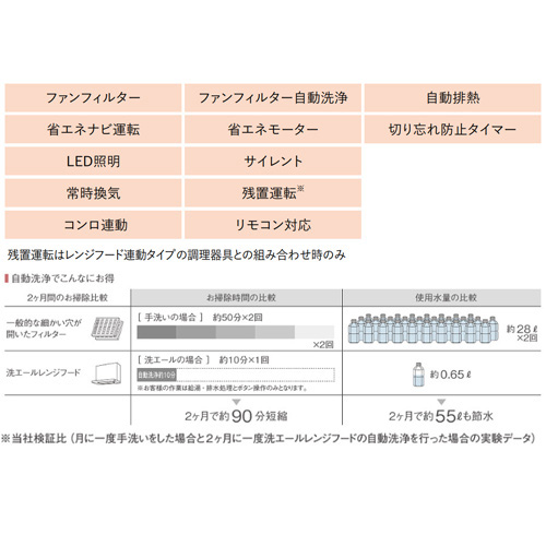 ・残置運転※レンジフード連動タイプの調理機器と組み合わせ時