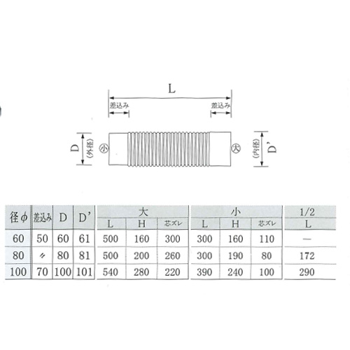 フレキ自在筒(小)[基本標準排気筒][φ100][リベット固定方式][排気部材]